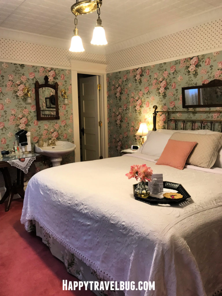 Most of the bedrooms are located upstairs. We had the Victorian Room which reminded me a lot of my Mom’s antiques. My Mom is a huge fan of all things Victorian. This room would make her happy. Everything fit the theme, from the mirrors, the wallpaper and furniture, all the way down to (or up to) the chandelier.