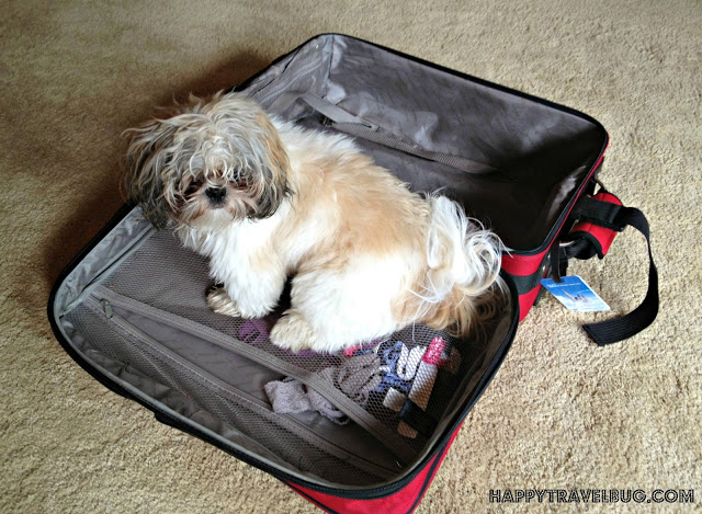 Some people hate packing, but I love it! It is part of my strange love of organizing things. Louie has taken an interest in my packing as well. Not sure if he just has a love of being in suitcases or is trying to halt the process so I won’t leave him. 🙂 He was just in from playing in the sprinklers, hence the crazy hair!